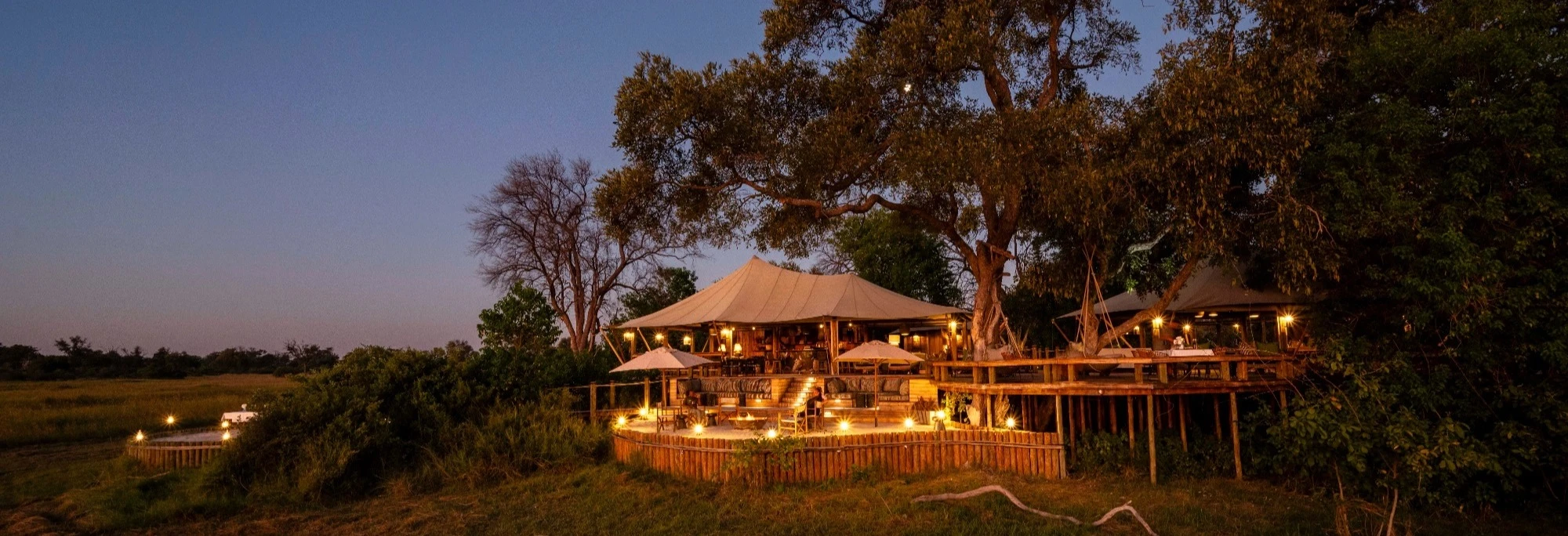 Desde los campamentos, la fauna se acerca de manera natural a los puntos de agua, permitiendo observaciones continuas incluso sin salir de la habitación. Algunas noches transcurren al aire libre, en plataformas elevadas en plena sabana, donde el cielo se convierte en el único techo.