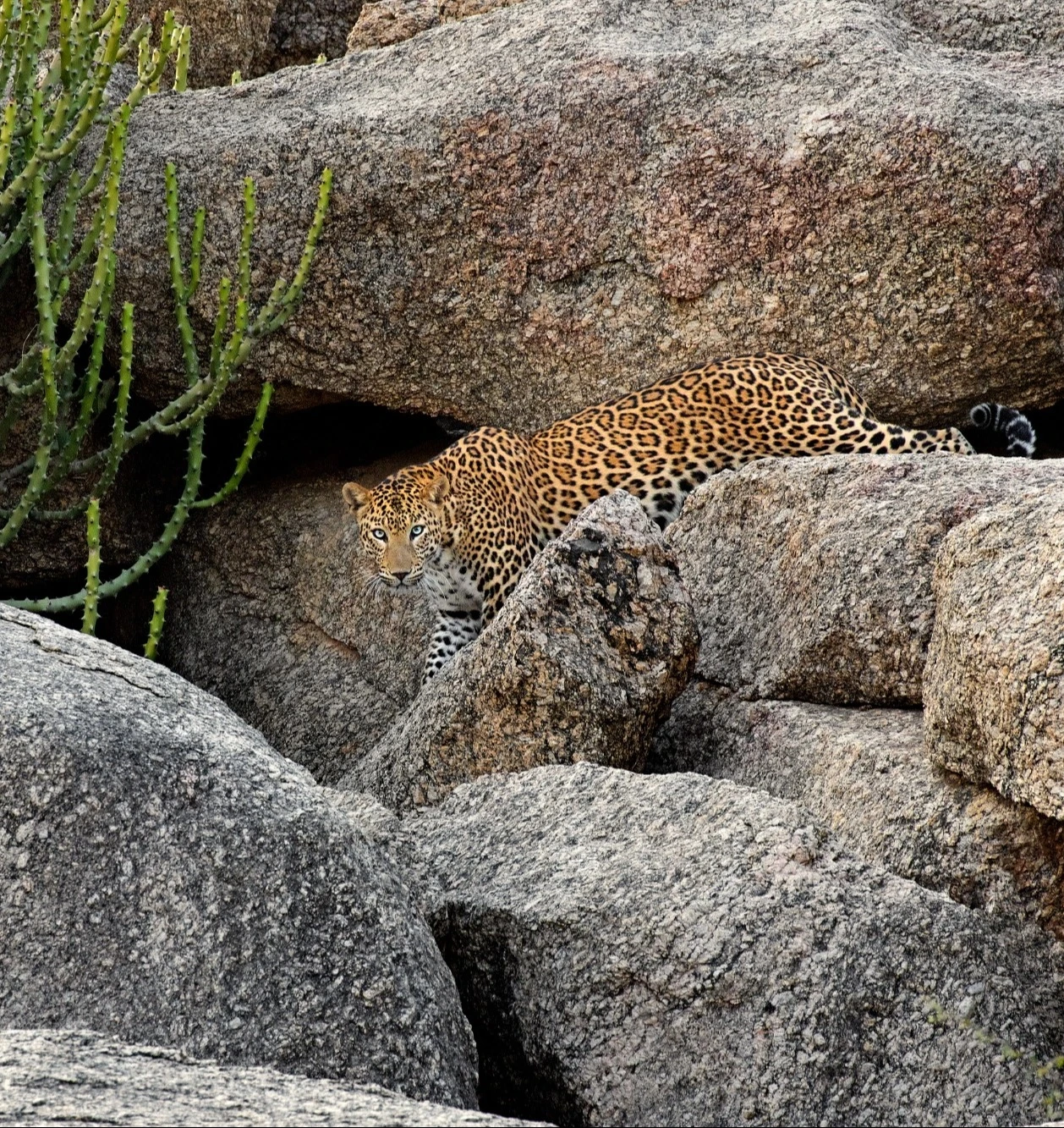 Más al oeste, el paisaje cambia hacia un terreno más abierto y mineral. Entre colinas de granito, los leopardos se mueven con una agilidad sorprendente, adaptándose a un entorno donde la roca se convierte en refugio. A diferencia de otros destinos africanos, aquí es posible observarlos con mayor frecuencia durante el día, en un equilibrio poco habitual entre fauna salvaje y vida local. Su capacidad de adaptación los convierte en uno de los depredadores más inteligentes y discretos del planeta.