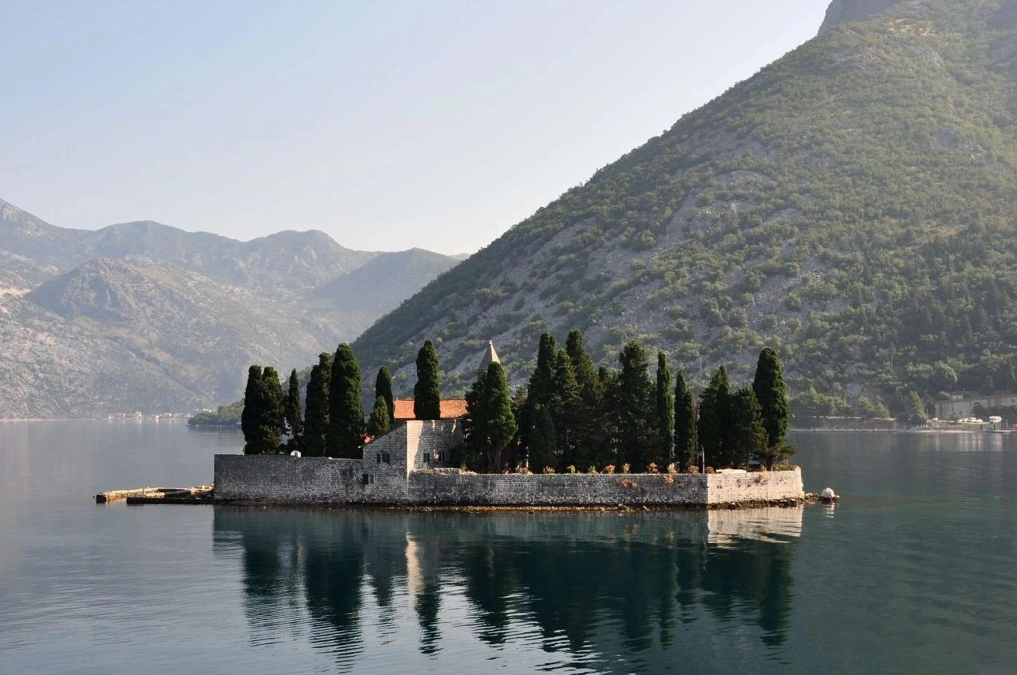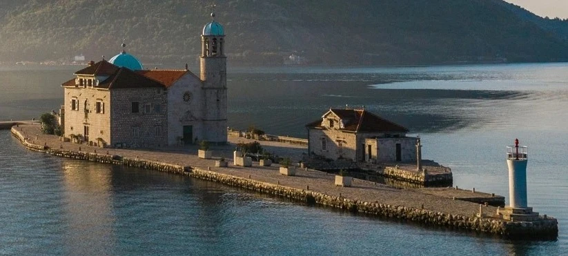 La bahía de Kotor se descubre desde el agua, donde la escala del paisaje se entiende entre montañas abruptas y pequeñas localidades históricas. Frente a Perast emergen dos islas simbólicas: San Jorge, cubierta de cipreses y aún habitada por una comunidad monástica, y Nuestra Señora de las Rocas, un islote artificial construido durante siglos por marineros locales. El contraste entre ambas, una cerrada al público y otra visitable, aporta una dimensión cultural única al recorrido.