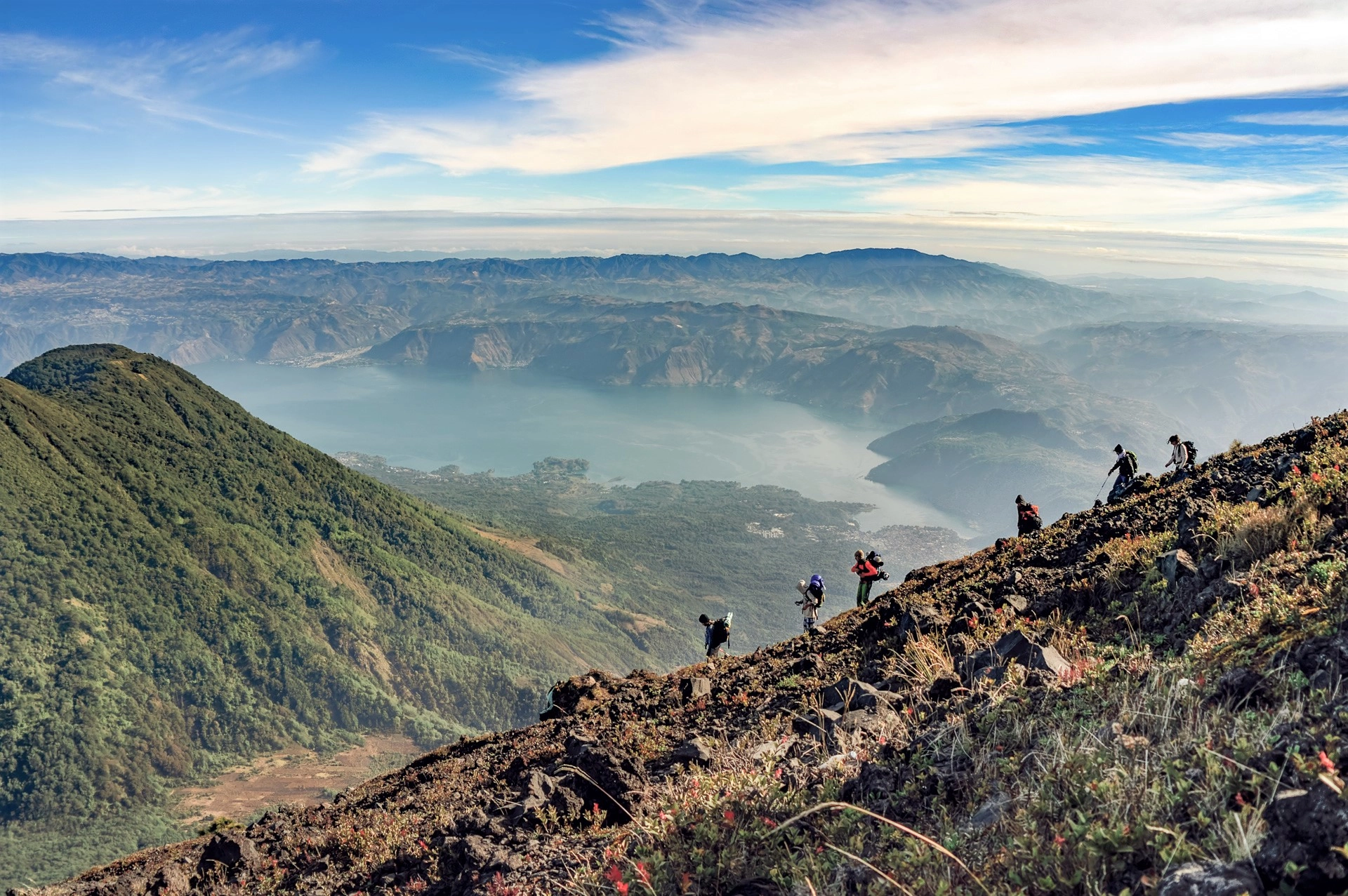Recorrido aéreo y terrestre por el lago Atitlán: llegada en helicóptero a orillas del lago, con caminatas entre cafetales, exploración en lancha de sus pueblos y encuentros con comunidades locales.